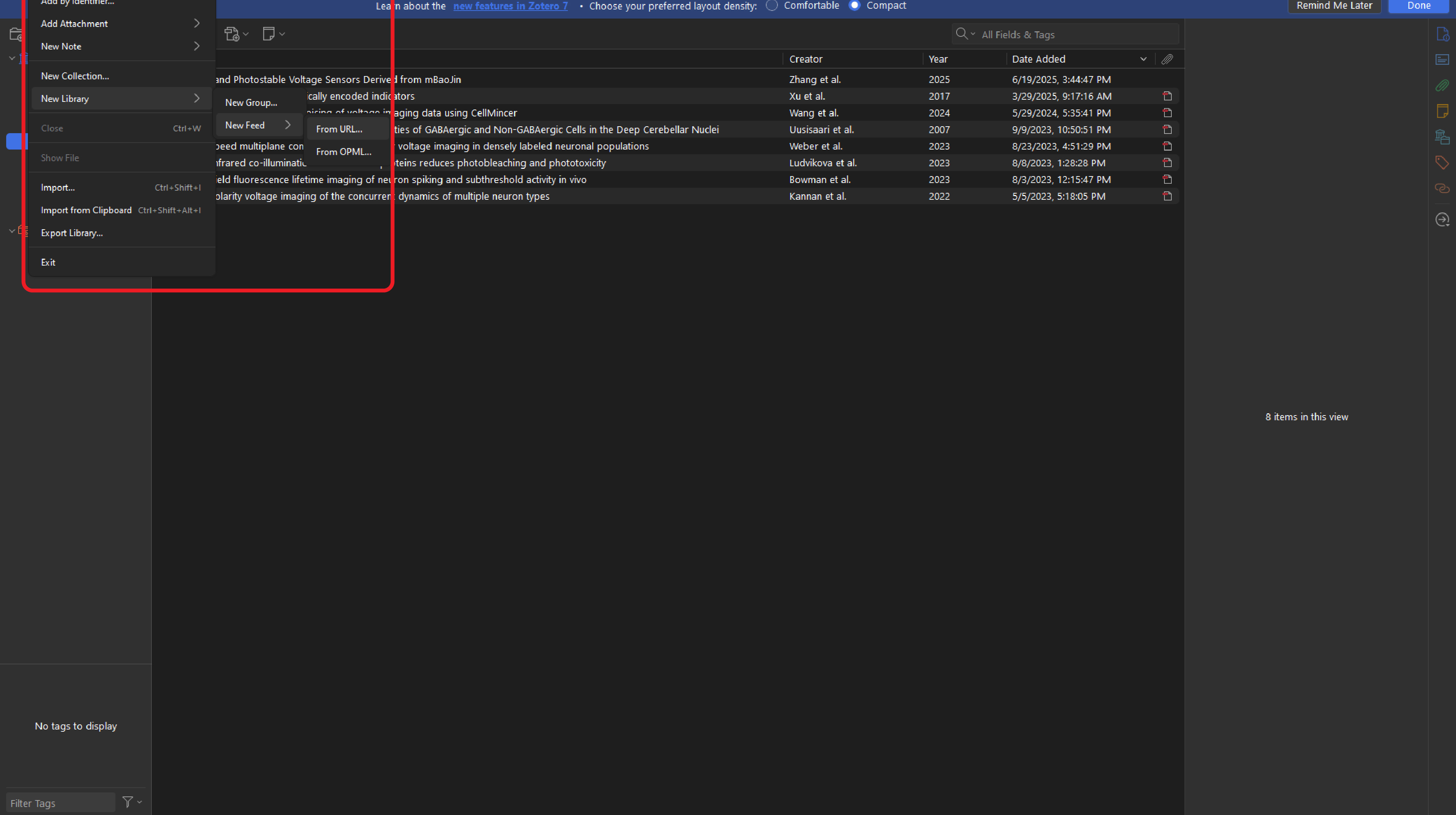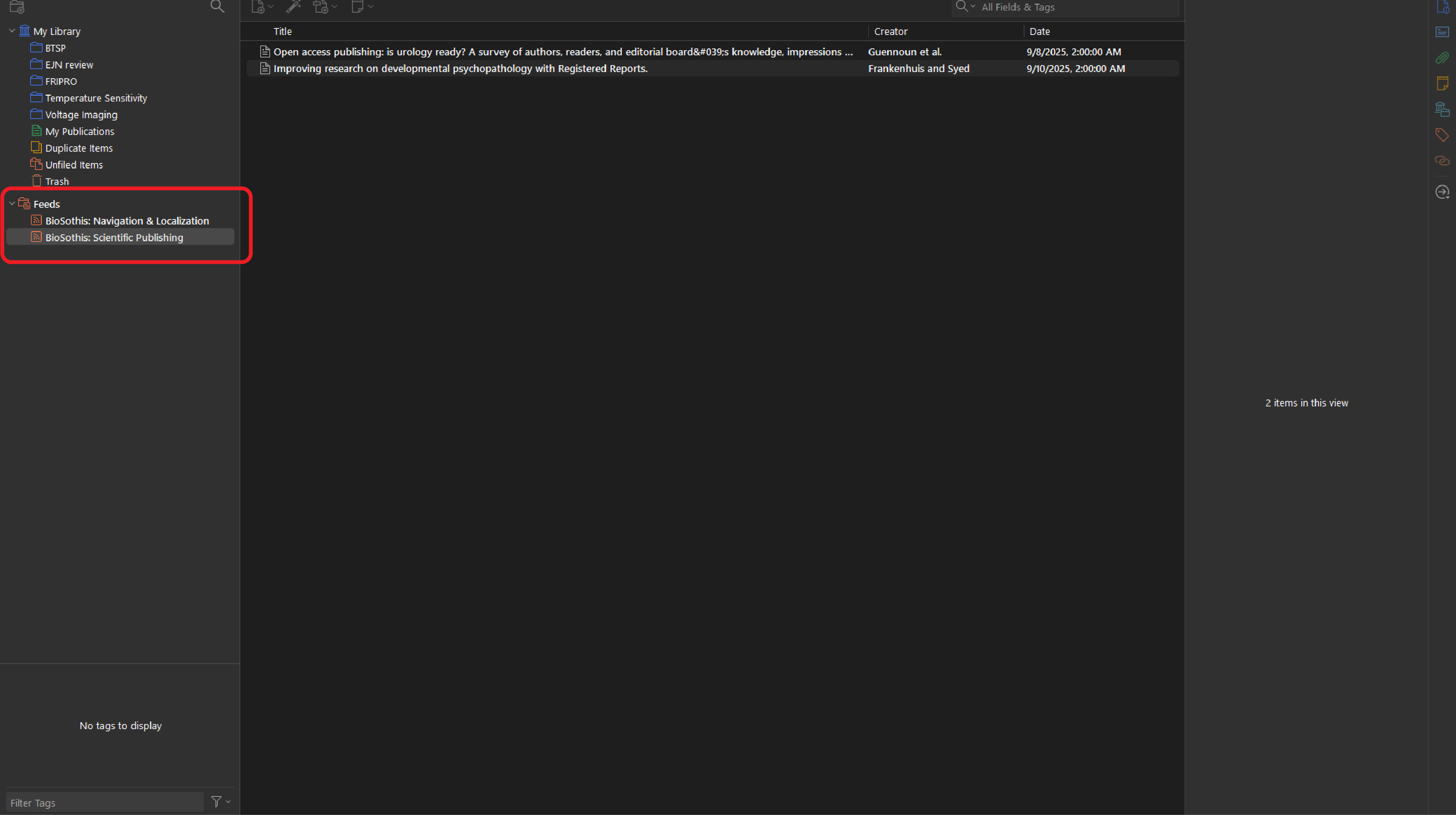 8. You can add your curation as a feed in Zotero. Copy the RSS feed link, then add it via Zotero's "New Library" -> "New Feed" function.