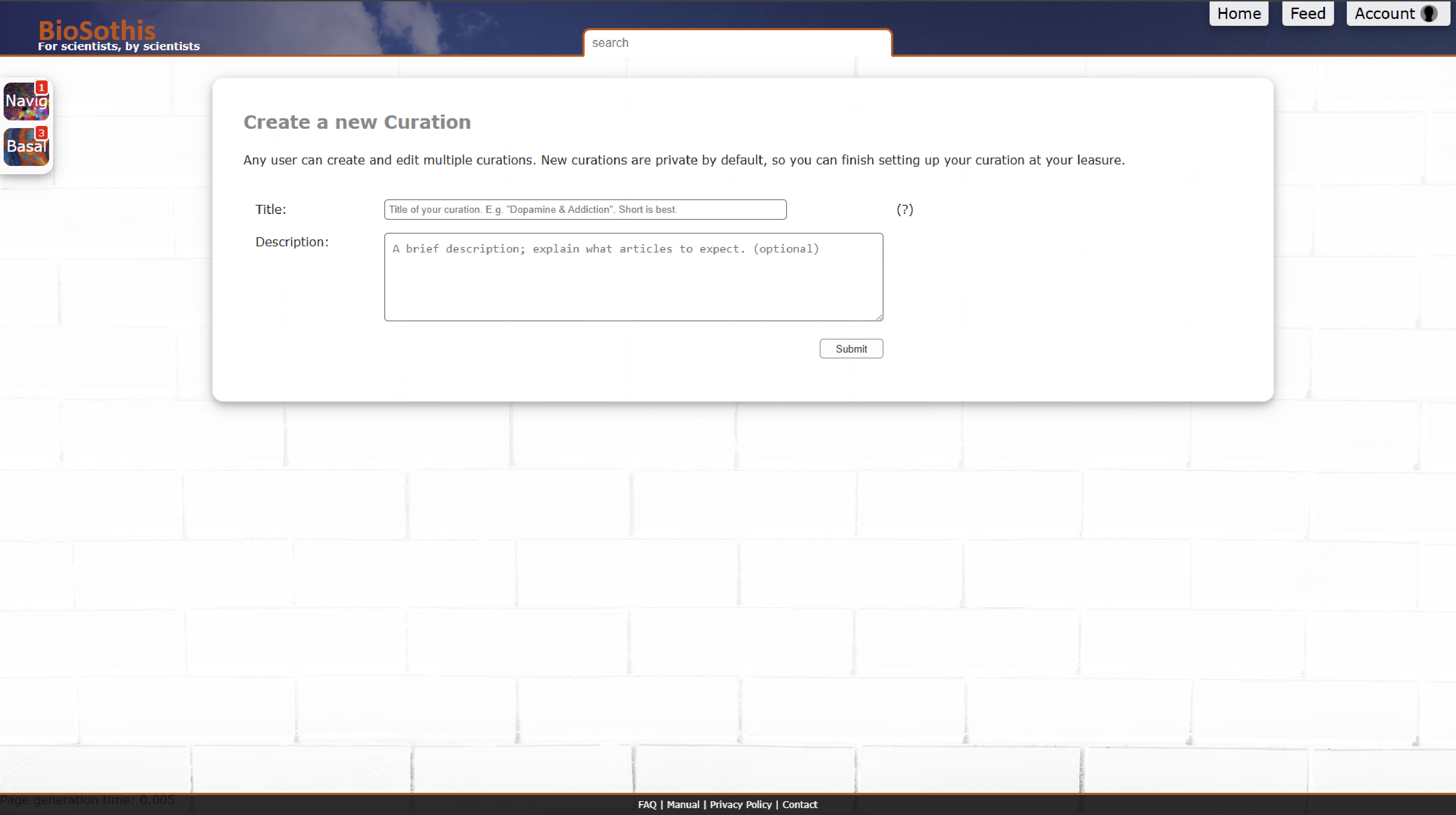 BioSothis for curators: this guide is aimed at helping new users create and manage a curation. To do so, you must first create an account. If you log in through OrcID, an account will automatically be created for you.
